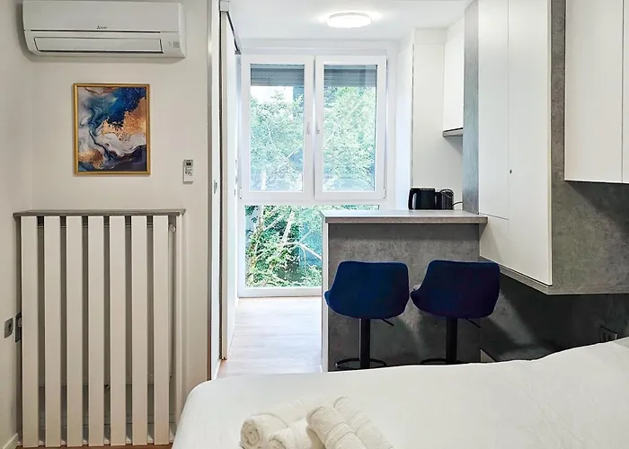 Dette veludstyrede overnatningssted er ideelt beliggende 400 meter fra St. Nikolaus Domkirke. Centrum for Ljubljana kan findes inden for 10-minutters gang. Restavracija Ronin og Restaurant Hisa Pod Gradom ligger inden for 300 meter væk. Populære seværdigheder i nærheden af Dragebroen.